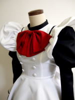 エプロンをはずしてワンピースと付け襟、リボンのみの組み合わせでロリータ風にもしていただけます。
